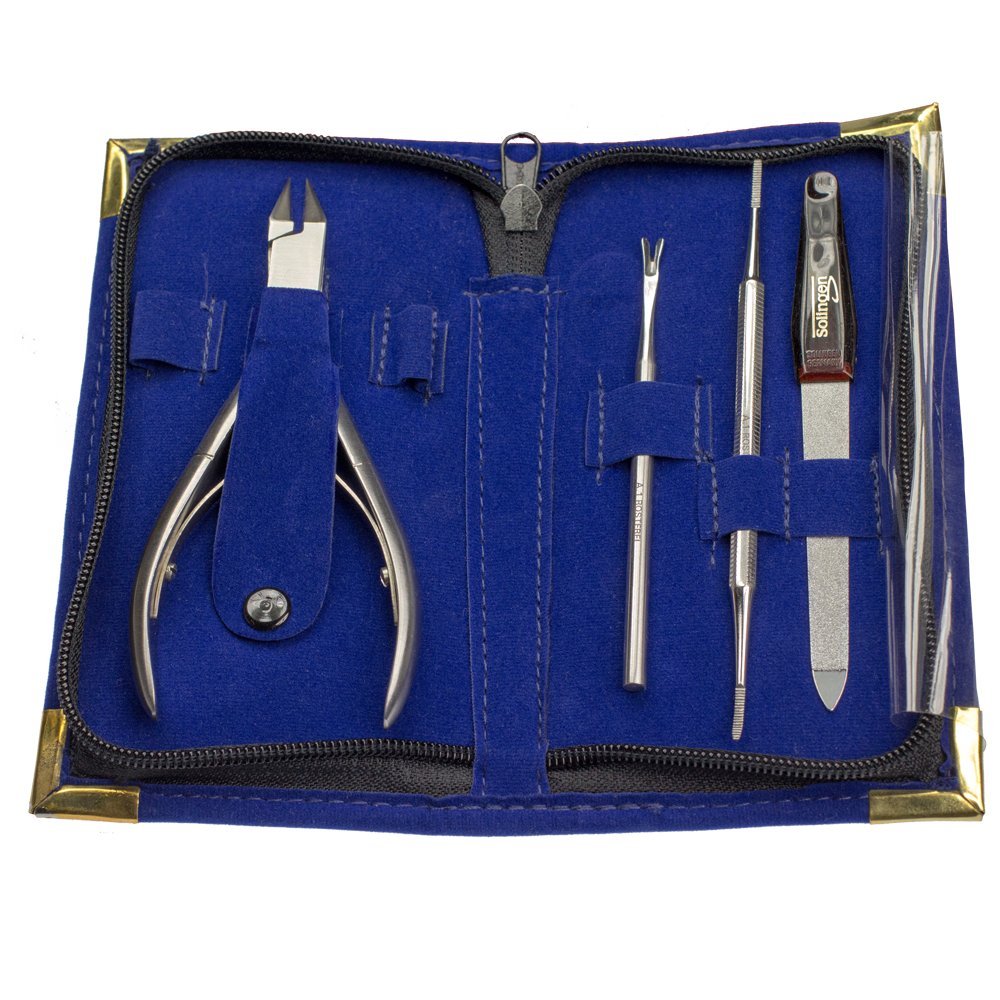 Maniküre-Set - Nagelpflege-Etui - Taschen-Etui - Nagelschere für starke Nägel - Kosmetik-Pinzette zum Haarezupfen - Saphir-Nagelfeile aus Solingen