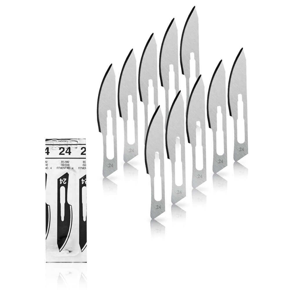 10 Stück Skalpellklingen Figur 24 aus Karbonstahl für Skalpell-Halter Nr. 4 - Ersatzklingen einzeln steril verpackt