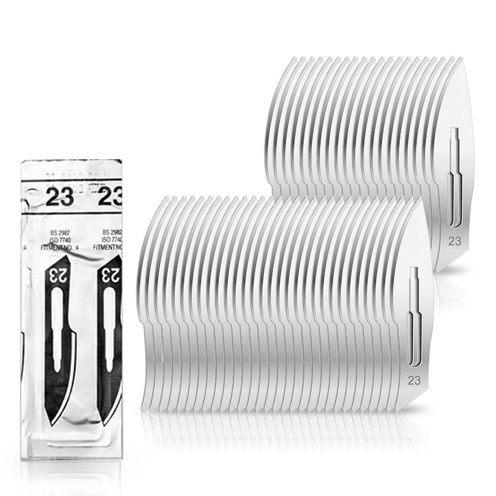 50 Stück Skalpellklingen Figur 23 aus Karbonstahl für Skalpell-Halter Nr. 4 - Ersatzklingen einzeln steril verpackt