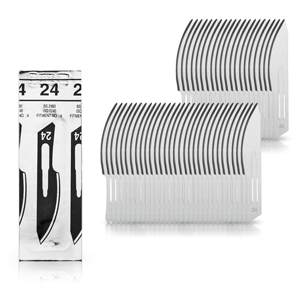50 Stück Skalpellklingen Figur 24 aus Karbonstahl für Skalpell-Halter Nr. 4 - Ersatzklingen einzeln steril verpackt