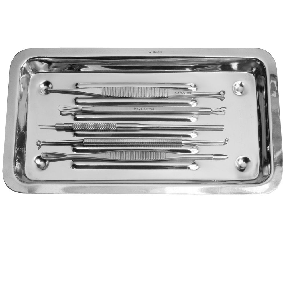 Chirurgische Präzision und Langlebigkeit:Alle 5 Instrumente sind aus hochwertigem, rostfreiem Edelstahl gefertigt. Das Material ist hautfreundlich, leicht zu desinfizieren und garantiert eine langanhaltende Schärfe und Funktionalität für präzise Behandlungen