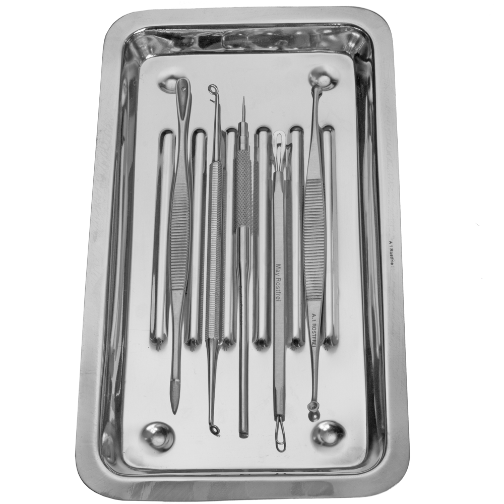Professionelles Komedonenheber-Set (6-teilig) aus Edelstahl | Inklusive hygienischer Instrumentenschale für reine Haut