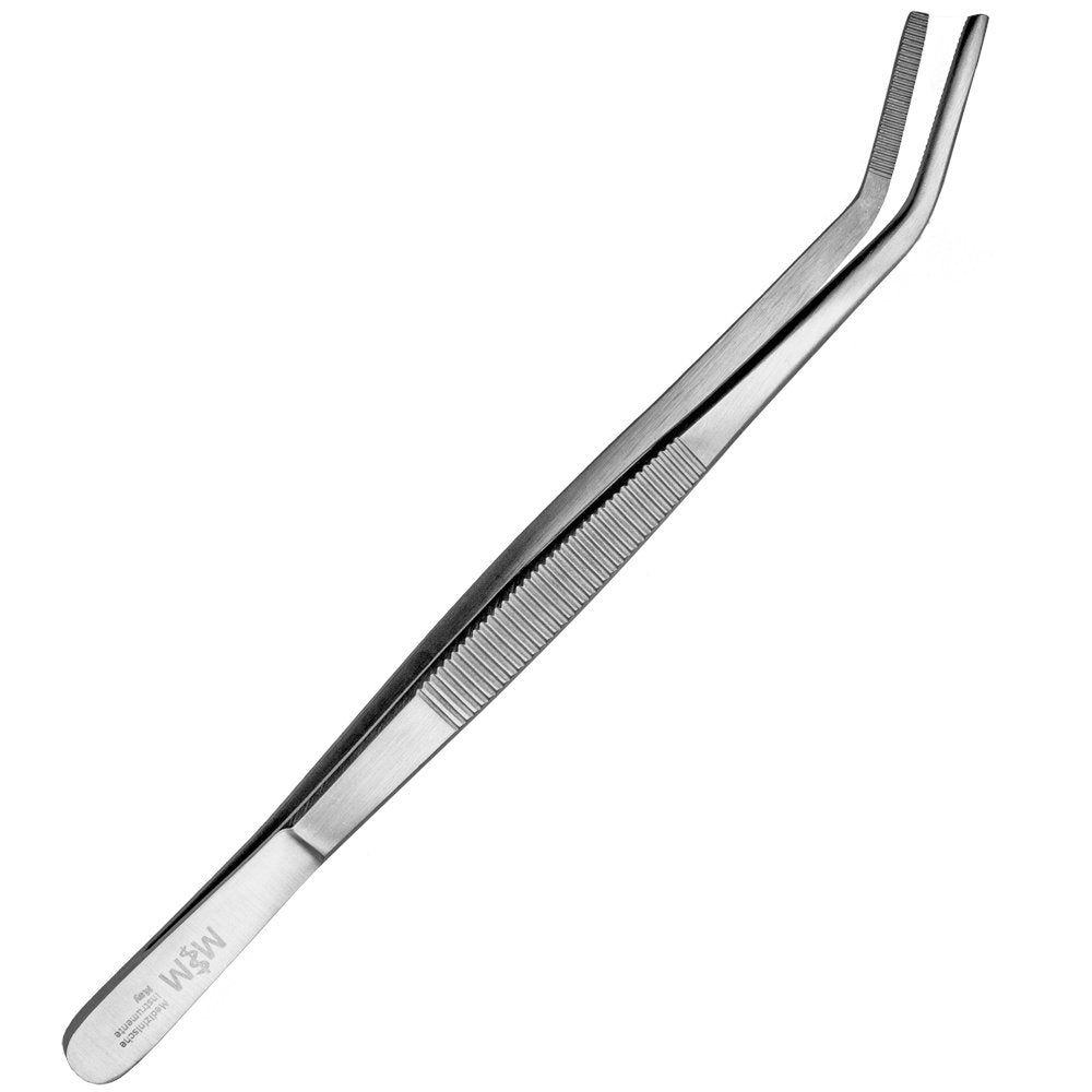 Kochpinzette - Küchenpinzette - Wendepinzette - Grillpinzette - abgewinkelte und geriefte Spitze - Pinzette aus Edelstahl - Diverse Längen