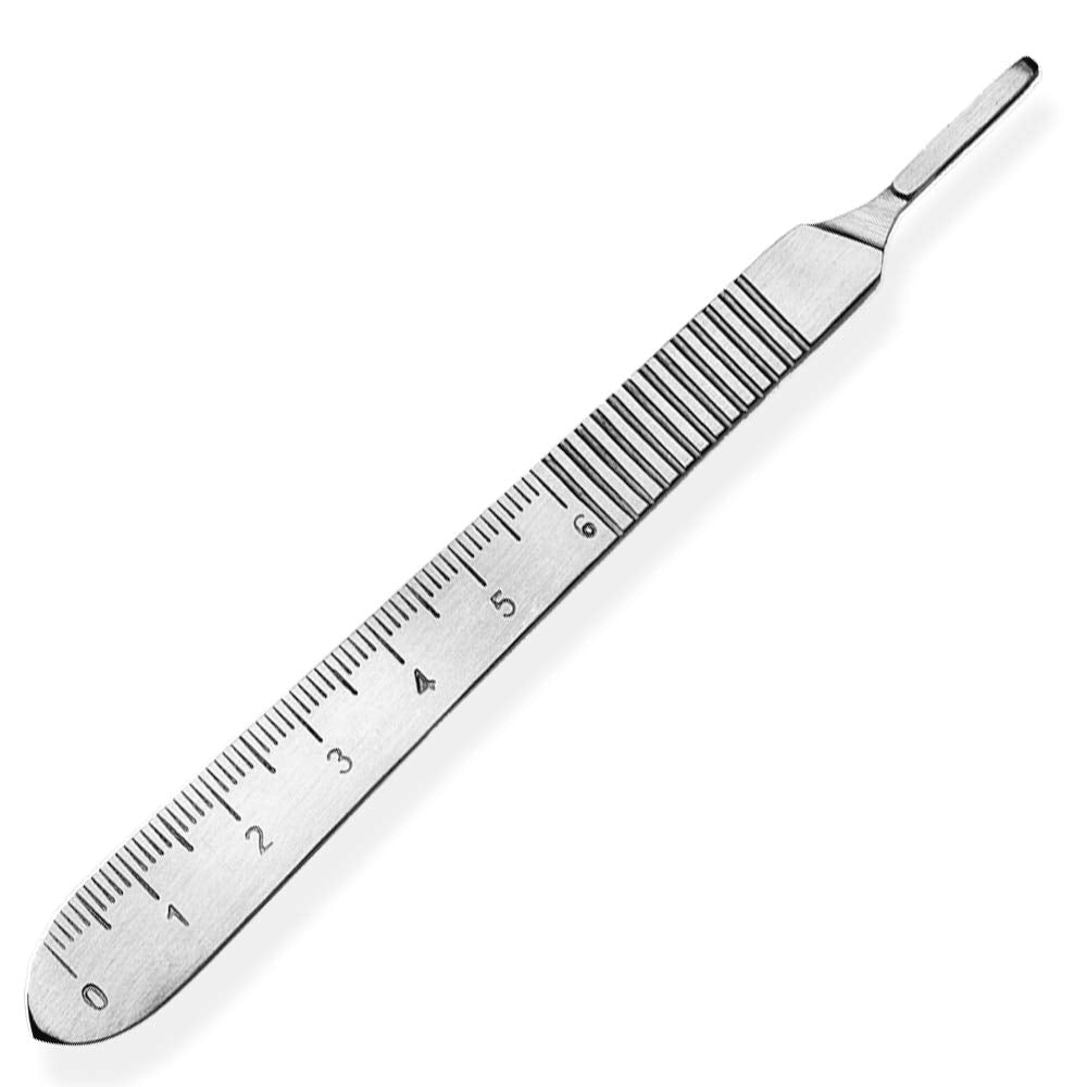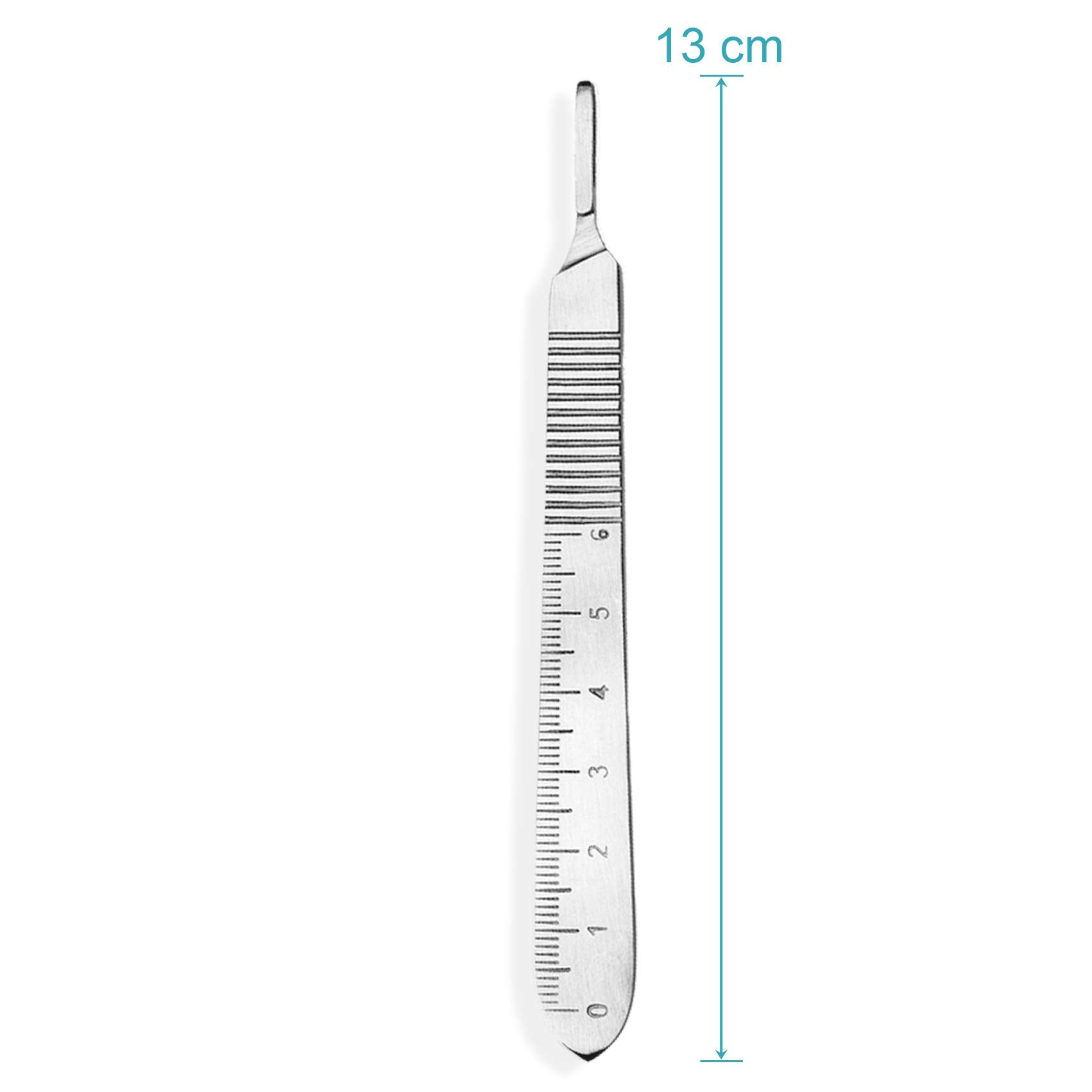 Set - 10 Stück Skalpellklingen Figur 12 aus Karbonstahl - Ersatzklingen einzeln steril verpackt + 1 x May - Skalpell-Halter mit 13 cm langem Griff inkl. Meßskala in cm - Edelstahl