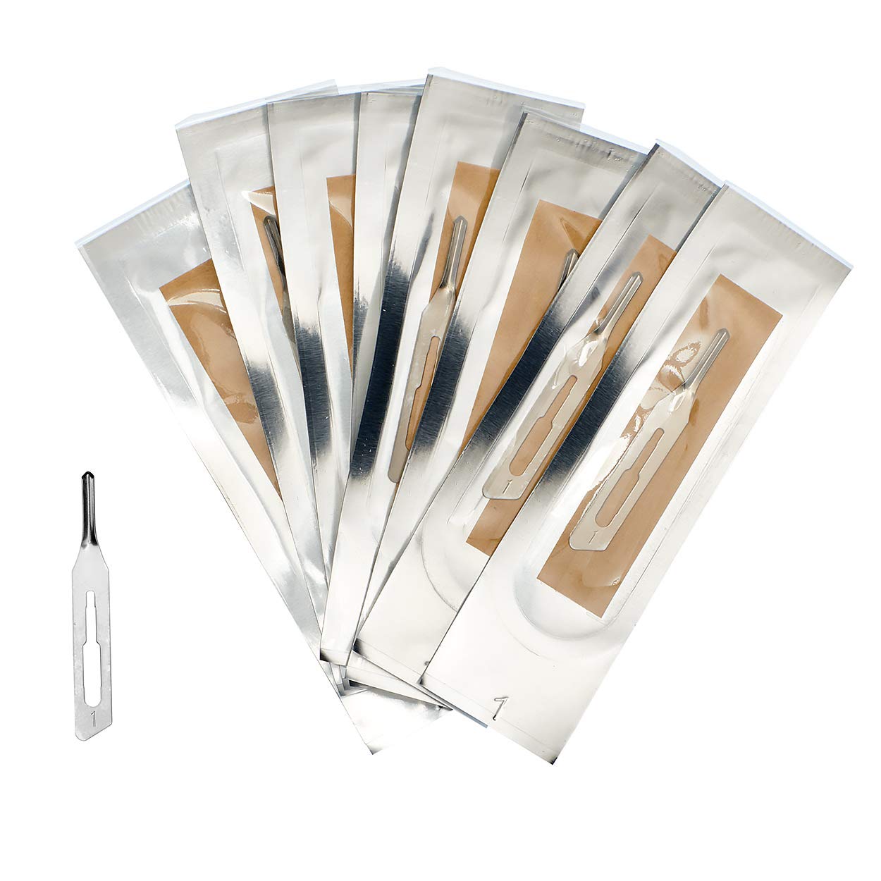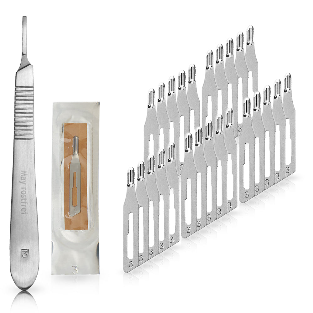Set 25 St眉ck Hohlmei脽elklingen Figur 3 einzeln steril verpackt + 1 x Skalpellhalter mit flachem Griff - Edelstahl