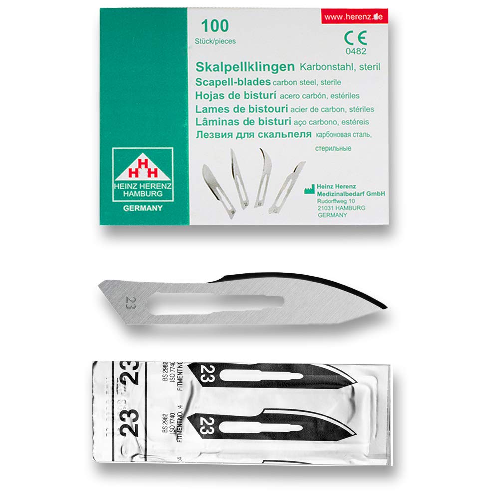 Skalpellklingen Figur 23 aus Karbonstahl für Skalpellhalter Nr. 4-100 Stk - Ersatzklingen einzeln steril verpackt