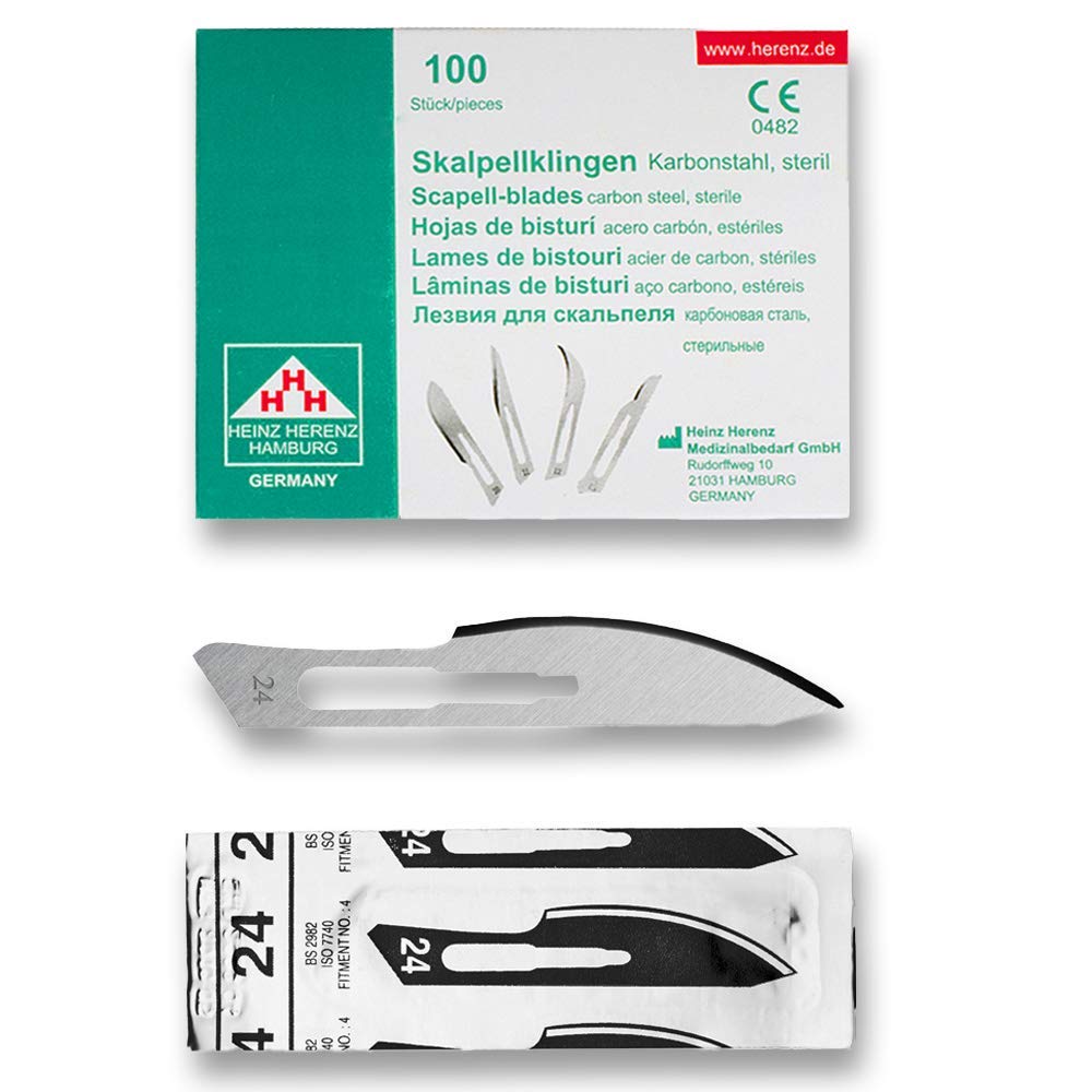 Skalpellklingen Figur 24 aus Karbonstahl für Skalpellhalter Nr. 4 - 100 Stk - Ersatzklingen einzeln steril verpackt